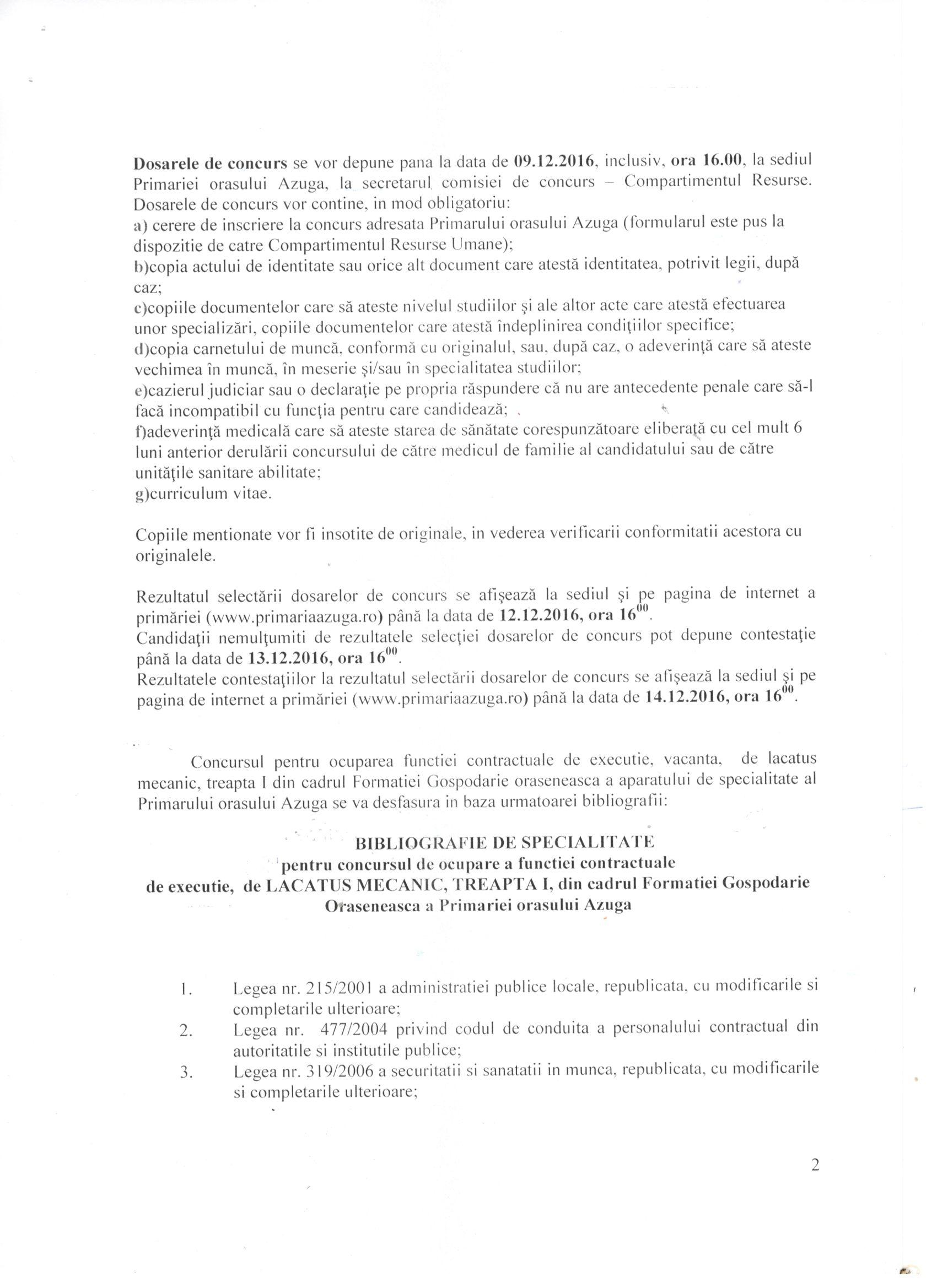 Rezultate selectie dosare inscriere la concurs bibliotecar
