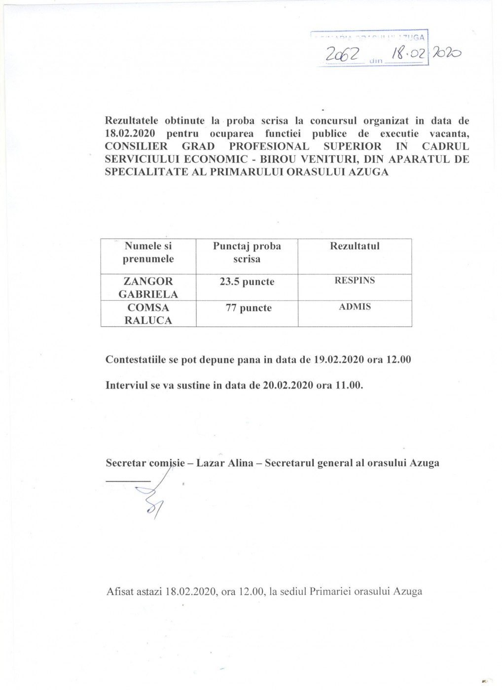 Rezultate selectie dosare inscriere la concurs bibliotecar