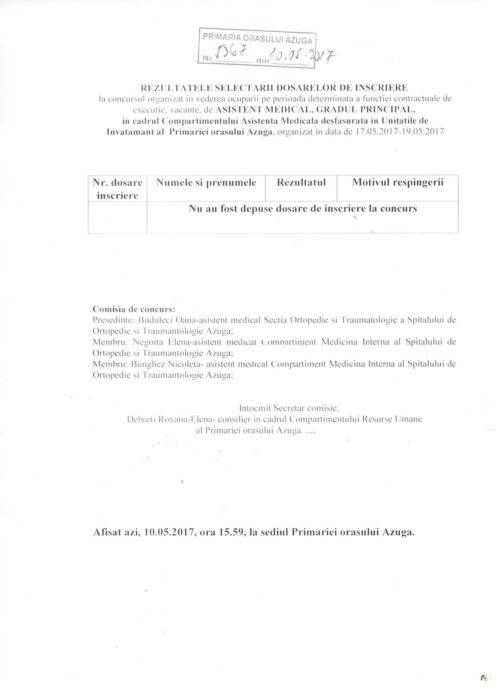 Rezultate selectie dosare inscriere la concurs bibliotecar