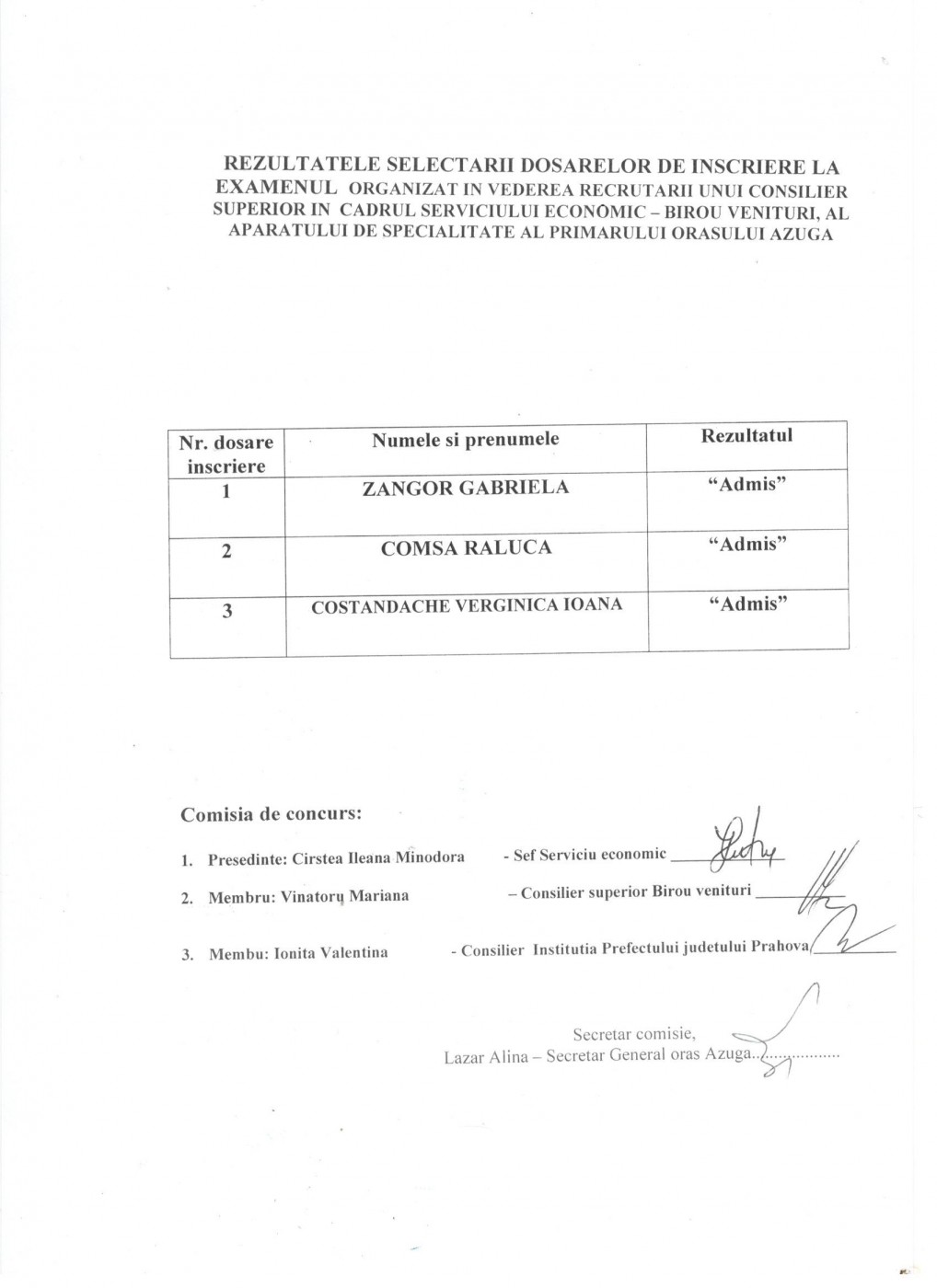 Rezultate selectie dosare inscriere la concurs bibliotecar