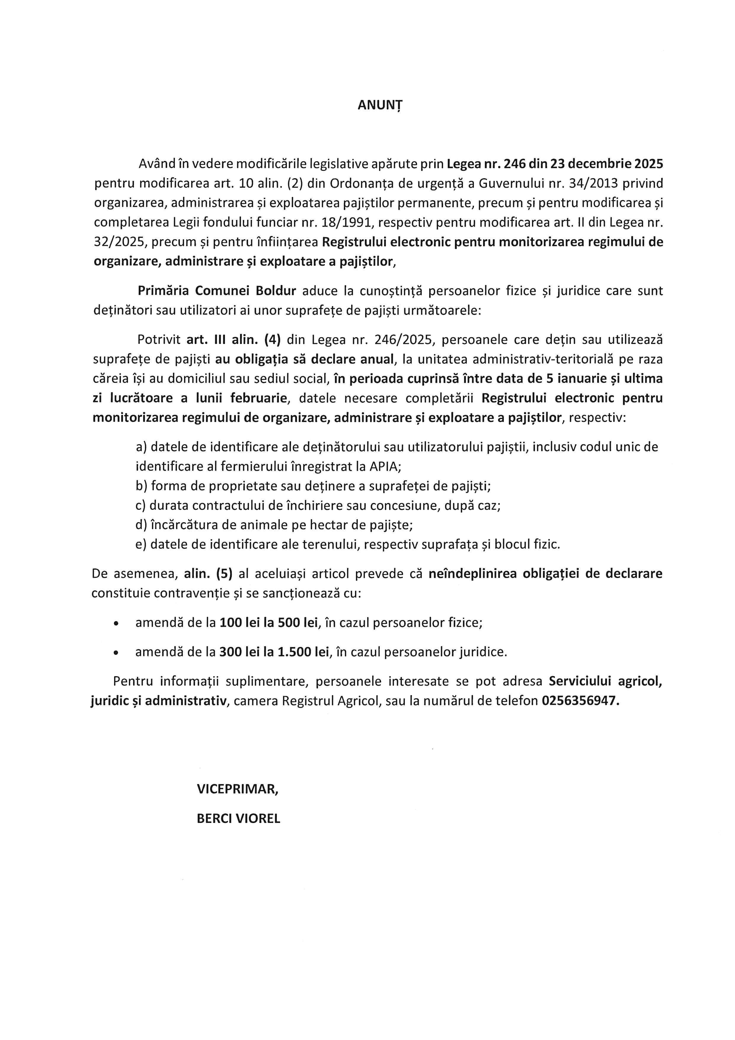 Anunț Registru Electronic Pajiști