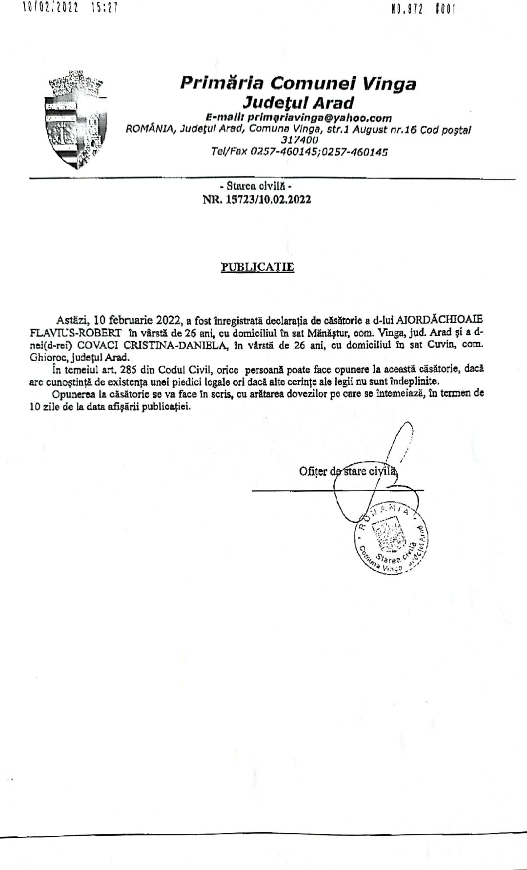 Data anunțului |
