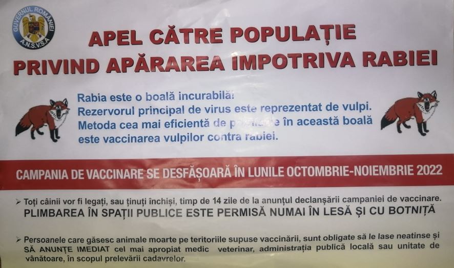 Informare campanie vaccinare împotriva rabiei octombrie-noiembrie 2022