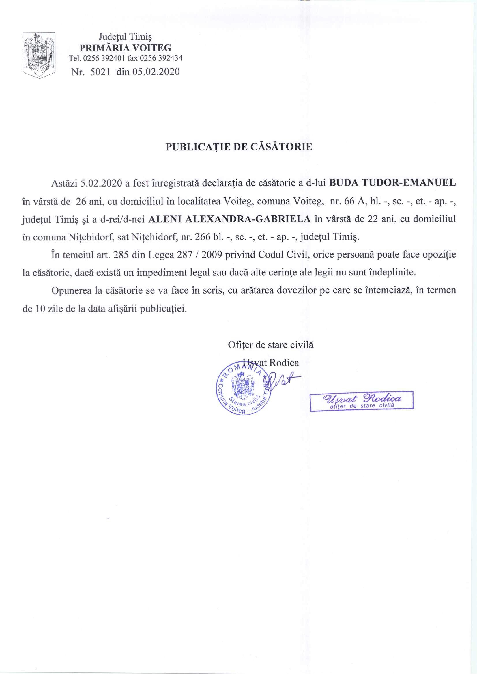 | Buda Tudor-Emanuel Aleni Alexandra-Gabriela |